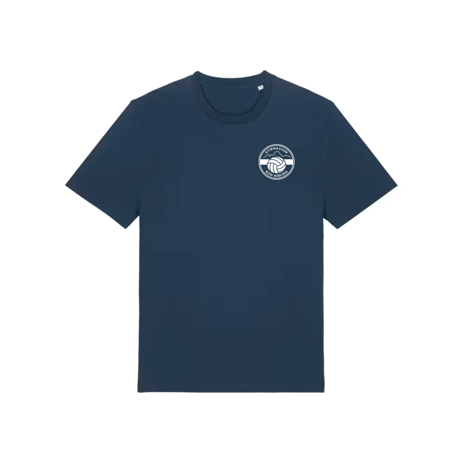 Bio T-Shirt unisex mit dem schönen Kreis-Logo mit dem Schriftzug Gymnasium Bad Aibling und den Bergen auf dem Rücken und der Berglinie auf der Brust!