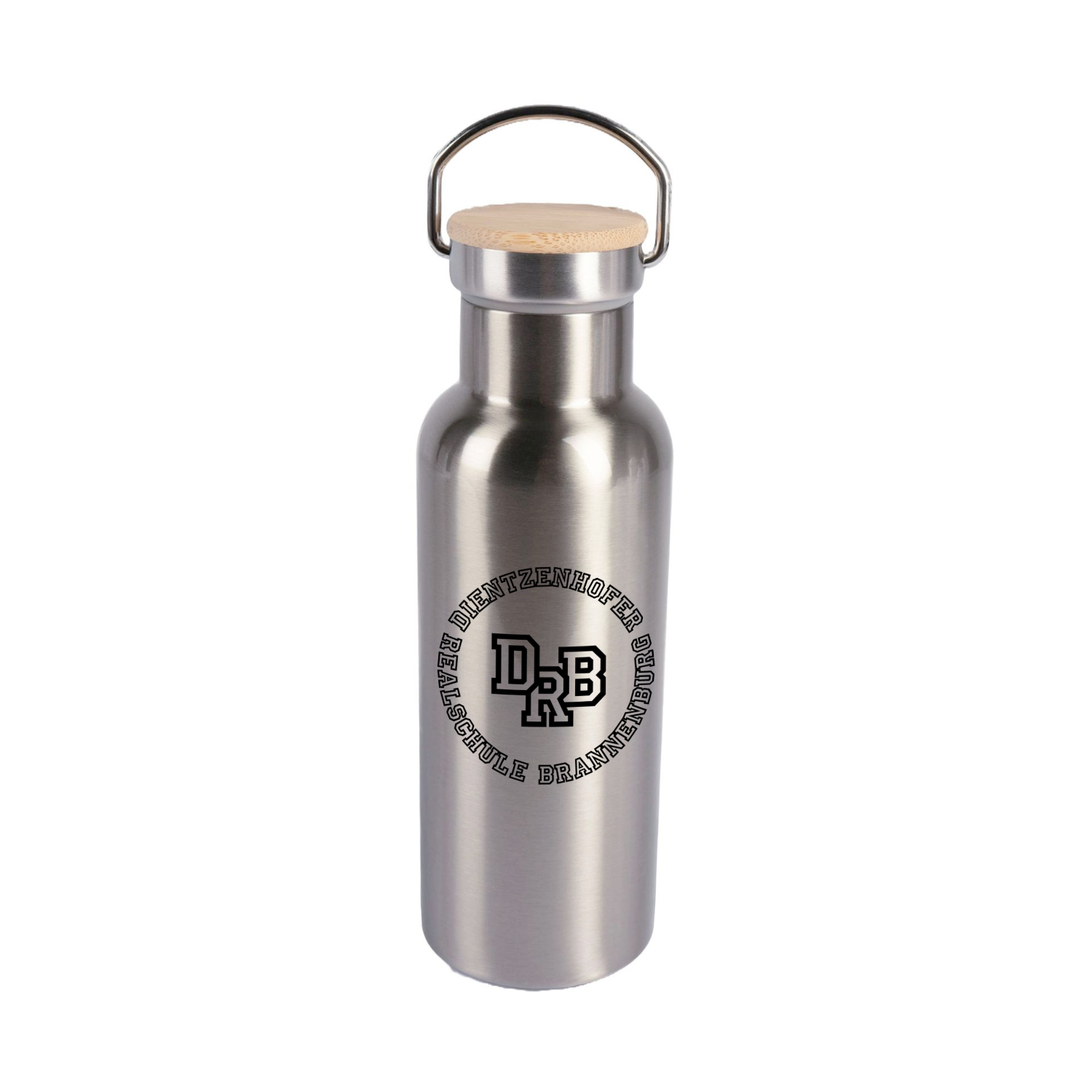 Diese doppelwandige Edelstahl-Thermoskanne ist in silber oder weiss erhältlich und mit dem passenden DRB Sport-Logo der Dientzenhofer Realschule Brannenburg bedruckt. Sie hat einen schönen Bambus-Deckel mit einer großen Öffnung, in der Du ganz easy Deine Heissgetränke, Deine Säfte oder auch Deinen Smoothie einfüllen kannst, ohne alles zu verkleckern. Du kannst je nach Einsatzzweck zwischen drei verschiedenen Größen wählen, 400ml, 500ml oder 750ml.