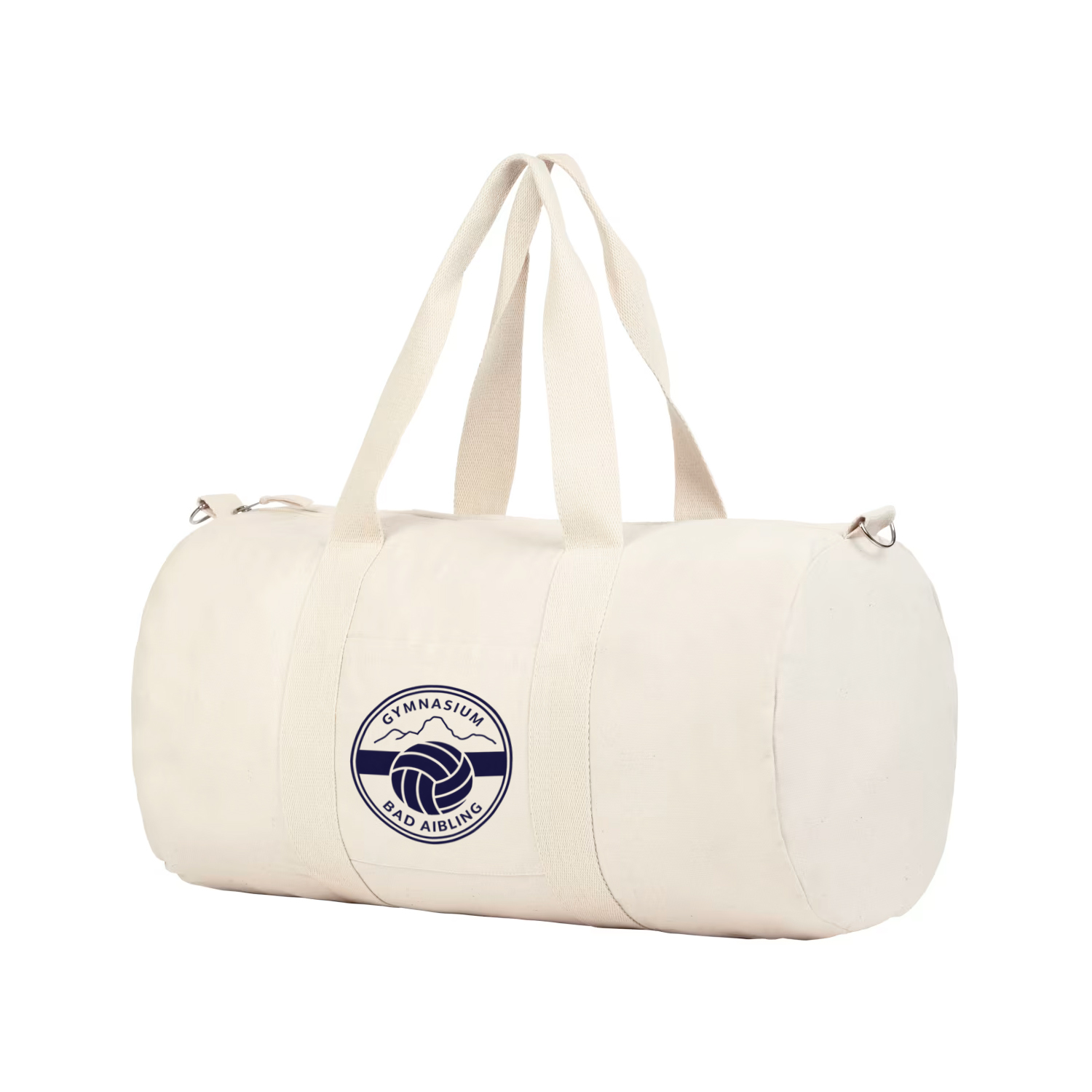 Bereit für Training, Wochenende oder unterwegs – deine Duffle Bag aus der Sonderkollektion des Gymnasium Bad Aibling zum Motto „Bewegte Schule“.