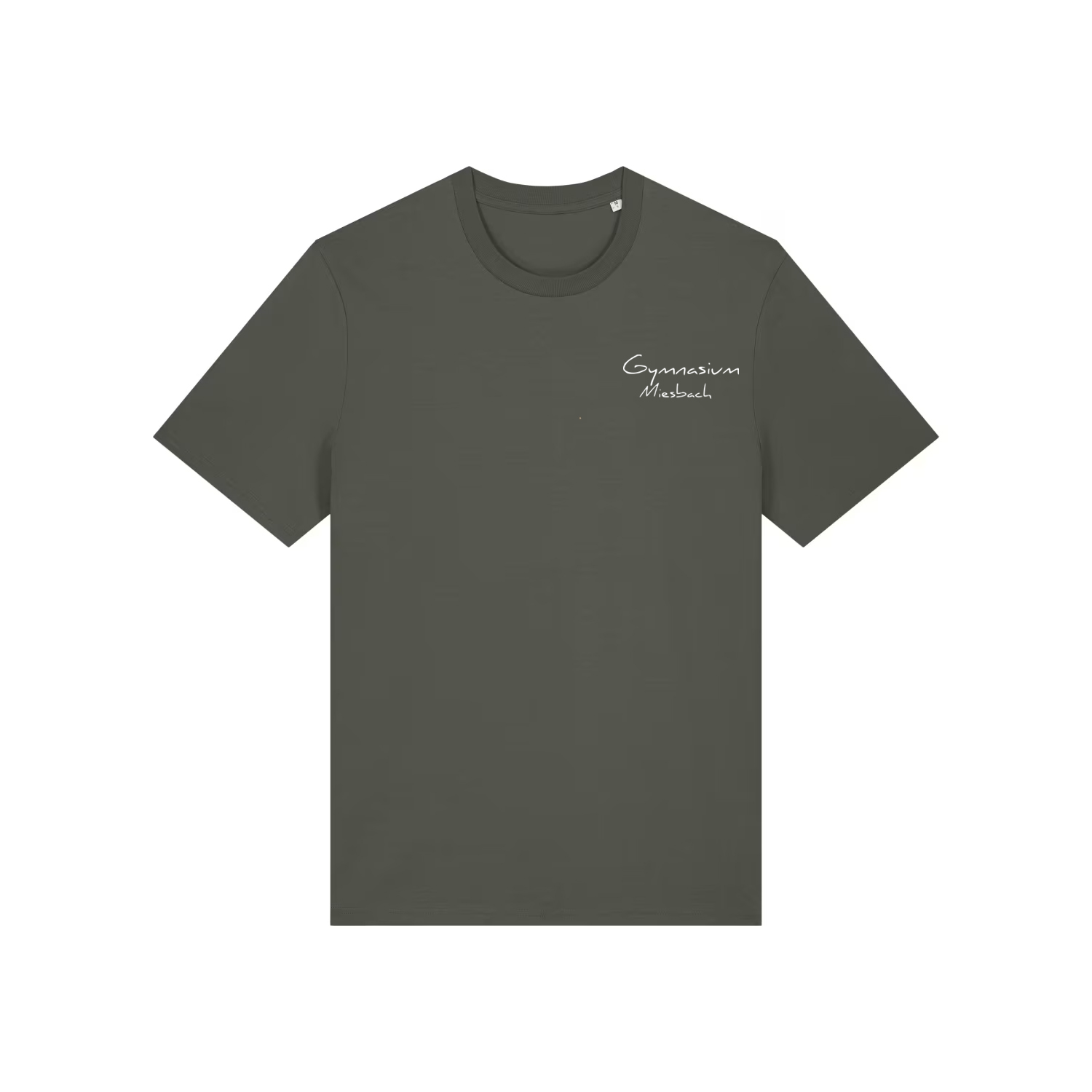Zeigt eure Verbundenheit mit dem Gymnasium Miesbach – mit diesem hochwertigen Bio-T-Shirt mit dem schönen GYMB Pegabyte Logo auf dem Rücken und dem GYMB Basic Logo auf der Brust.