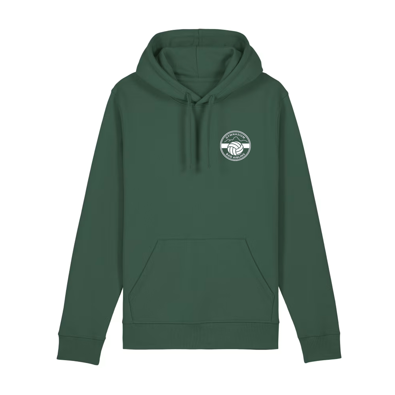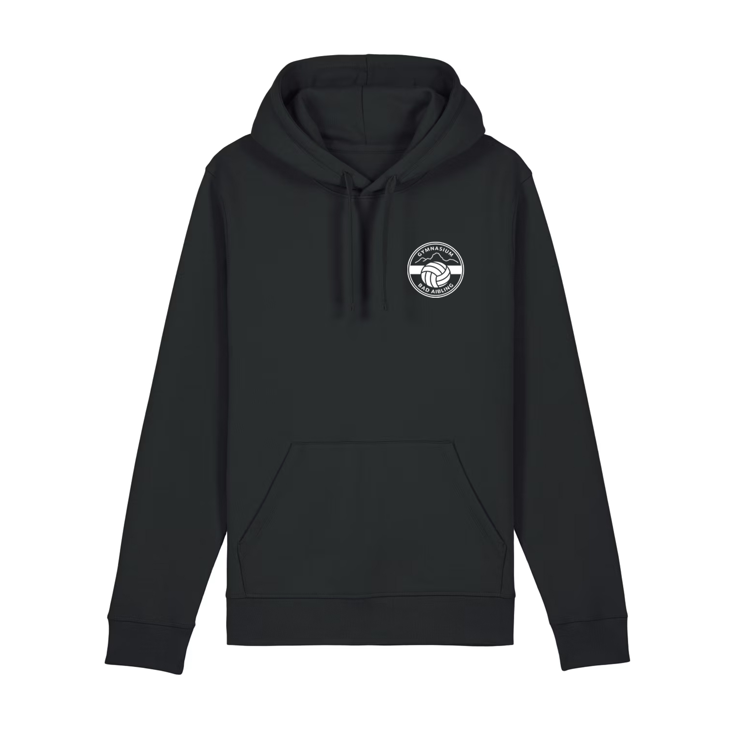 Bio Hoodie unisex mit der Berglinie auf der Brust und dem schönen Bergketten-Logo vom Gymnasium Bad Aibling auf dem Rücken!